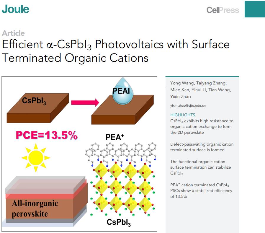 内“病”外“治”:表面有机阳离子提升CsPbI3全无机钙钛矿相稳定性及光伏性能