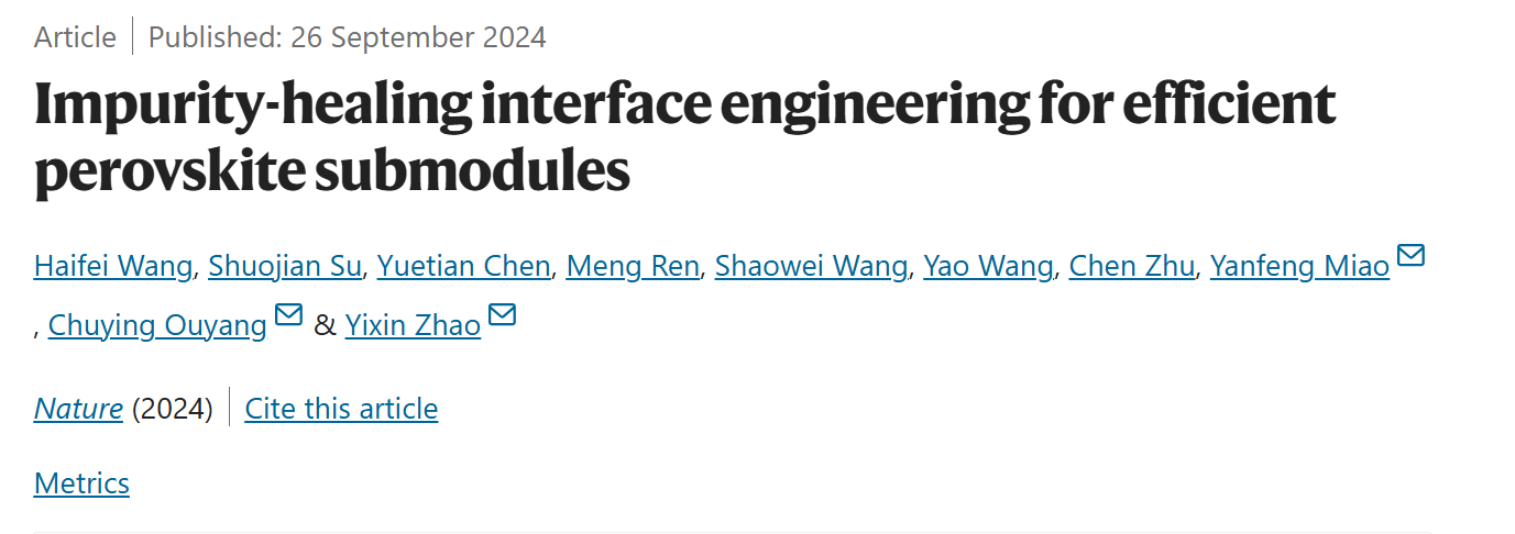 上海交大赵一新教授团队Nature:钙钛矿模组的杂质修复界面工程