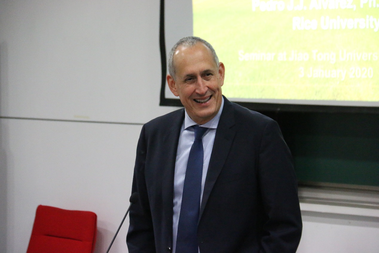 1月3日,美国工程院院士、国际水协(IWA)会士、2012年欧文克拉克奖获得者Pedro J. J. Alvarez教授在陈瑞球楼报告厅做客第149期大师讲坛,为交大师生带来题为“纳米水处理技术:实现分散式水处理和应对水-能源关联挑战的愿景”的精彩报告。