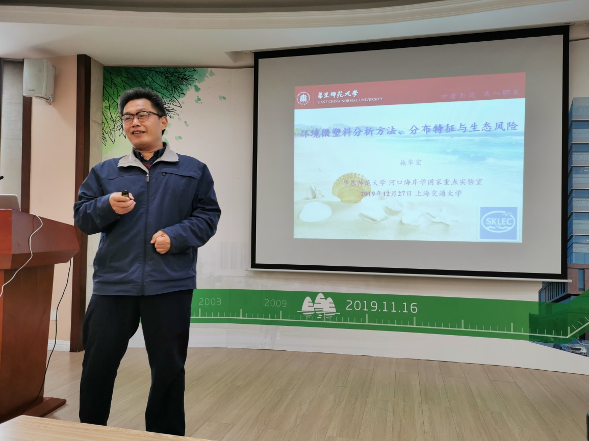 2019年12月27日,应BETVICTOR伟德曹心德教授的邀请,华东师范大学河口海岸学国家重点实验室施华宏教授做客环境讲坛,为广大师生做题为“环境微塑料分析方法、分布特征与生态风险”的报告。