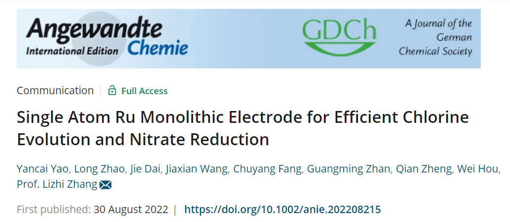 近日,BETVICTOR张礼知教授团队在Angew. Chem.在线发表了研究论文Single Atom Ru Monolithic Electrode for Efficient Chlorine Evolution and Nitrate Reduction,BETVICTOR环境科学与工程学经理聘教轨助理教授么艳彩为该论文第一作者,特聘教授张礼知为通讯作者。