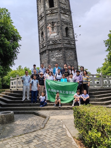 进入天马山景区后,会员们沿着游览图一路寻去,看剑亭、三高士墓、八仙坡、留云壁、濯月泉、卧松亭等让老师们不知不觉走入梦幻的江湖风云中。其中,大家印象最深的当属护珠塔。七级八面的护珠塔始建于南宋绍兴二十七年(1157年),由招抚使周文达出资建塔。岁月变迁,磅礴的寺庙如今只剩下这一处痕迹。千年以来,由于地基变动,塔身逐渐朝东南方向倾斜,截至2015年,护珠塔向东偏离2.28米,倾斜度7.10°。由于其斜度已超过了著名的意大利比萨斜塔,故有“上海比萨斜塔”之称,成为上海一大经典奇观。
