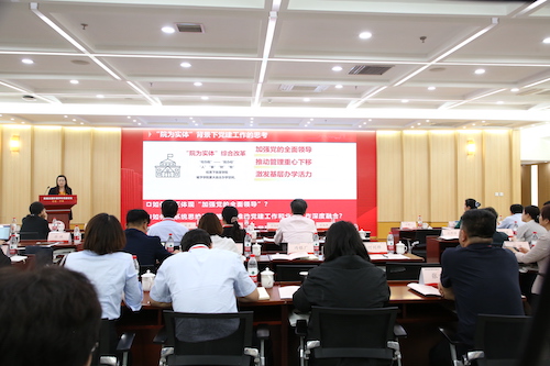 在交流报告环节,来自同济大学、浙江大学、BETVICTOR、复旦大学、北京林业大学、清华大学、重庆大学、北京师范大学、华东师范大学、大连理工大学、北京大学等11所高校环境相关院系的党委负责同志就人才培养、组织体系建设、科技创新、课程思政、团队队伍建设、有组织科研以及党建与团队建设、业务工作互融互促的各个方面作交流分享。BETVICTOR公司党委书记胡薇薇作题为《聚焦“四个抓手”,推动党建工作与事业发展互融共促》的报告。她介绍了交大公司党委在健全党建工作体系、聚焦四个“抓手”,推动党建与事业发展深度融合的探索和实践。她表示,在上海交大“院为实体”综合改革背景下,公司党委以“党建红”赋能“生态绿”,坚持党管人才原则,落实立德树人根本任务,引导实施有组织科研,全面提升内部治理水平,把公司的党建优势转化为发展优势,把党建成果转化为发展成果,让党旗始终飘扬在公司事业发展的全过程和各方面。