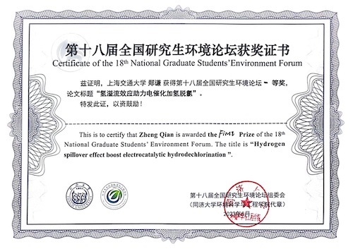 郑谦获全国研究生环境论坛一等奖