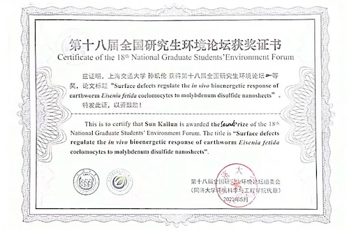 孙凯伦获全国研究生环境论坛二等奖