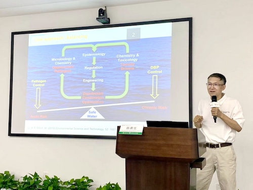 使用基于氯气对饮用水进行消毒的方法显著降低了由微生物引起的安全风险,这是20世纪公共卫生领域的一项重大进展。然而,由于消毒副产物(DBPs)以及其他已知、未知和新污染物(KUECs)的潜在健康风险,传统氯气消毒饮用水工艺仍然有待改进。传统的基于化学的水处理工艺无法有效去除DBPs和KUECs,因此迫切需要采用替代方法来降低风险。在本次报告中,陈勇生教授引入了一种新型的水处理理念——“Minus Approach”(给水处理工艺做减法),该方法在不影响微生物安全的情况下解决了DBPs和KUECs的问题。Minus方法基于膜的物理分离技术,从水处理过程中有效地去除DBPs前体,KUECs和病原体。在水处理中实施Minus方法可减少对于水处理工艺化学处理的依赖性、削减有害污染物的数量和提高水处理工艺的可持续性。在此过程中,陈勇生教授团队还分享了一种膜设计策略,利用基于机器学习的贝叶斯优化膜制备过程中的关键参数,实现专属膜的开发。