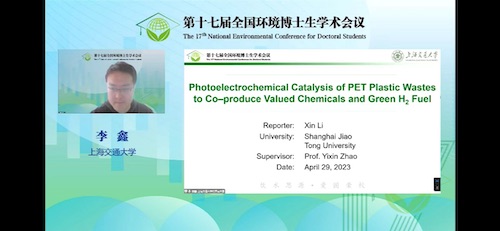 李鑫本科毕业于天津大学化工公司,以优异成绩被保送至上海交大BETVICTOR伟德攻读博士学位,并入选上海交大首届博士生“致远荣誉计划”,由BETVICTOR和美国宾夕法尼亚大学联合培养,师从国家杰青赵一新教授和美国两院院士Thomas E. Mallouk教授。在两位导师的悉心指导下,他将自己的研究方向聚焦到减污降碳协同增效实施方案上,确定了光电化学环境污染物治理及废弃物资源化转化作为自己的研究课题,从此开启了在废塑料资源化转化、二氧化碳转化利用、绿电制绿氢等领域的科研之旅。五年间,他先后发表高水平SCI论文15篇,其中以第一作者发表7篇,累计影响因子IF>90,授权发明专利6项。他还曾荣获2023年第十七届全国环境博士生学术会议口头汇报特等奖、2022年“华清杯”全国CCUS创新创意大赛三等奖、2021年第六届上海市研究生环境论坛优秀论文一等奖、2021年度BETVICTOR“博学致远”博士生学术论坛一等奖等诸多奖项。李鑫表示,能够取得这些成果,离不开导师赵一新教授的悉心指导和谆谆教诲,他从赵老师对于学术前沿的前瞻性和对于科学问题的严谨性中学习到了受用一生的宝贵经验。