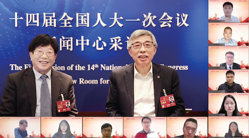 李鑫(右排上三)作为上海科创青年与全国人大代表“云端”对话