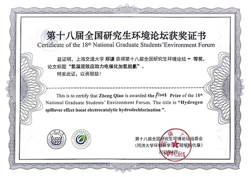 第十八届全国研究生环境论坛一等奖、二等奖