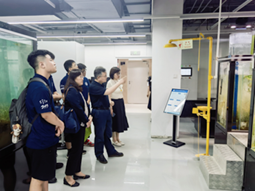 实践团首先前往中国环境科学研究院参观交流。中国环境科学研究院隶属中华人民共和国生态环境部,是国家级社会公益非营利性环境保护科研机构。实践团成员参观了位于中国环科院内的中韩联合实验中心、湖泊水污染治理与生态修复技术国家工程实验室、环境基准与风险评估国家重点实验室和科技成果展览室并举行座谈。湖泊生态环境研究所总工程师叶春、环境基准与风险评估国家重点实验室研究员孙福红及部分研究生代表一同参加此次座谈,中国环科院研究生院副经理廖海清主持座谈。双方就人才培养、科研合作、平台支撑和配套条件等进行了深入交流。