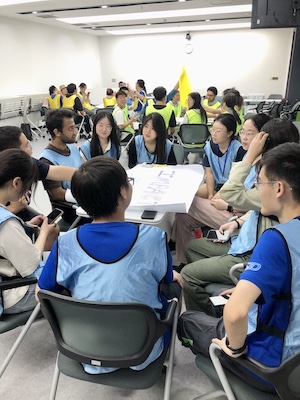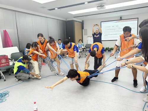 7月11日下午,校内体验拓展培训团队带领同学们进行破冰活动。在专业老师的指导下,同学们就“团队合作”这一主题展开热烈讨论。随后,全体学员分为四组,进行小组合作与比拼游戏。在欢声笑语中,同学们不仅增进了彼此间的了解,更深深体会到团结拼搏的力量。