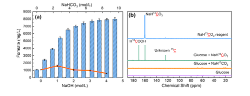 图2 碳水化合物水热还原CO2/NaHCO3效率及核磁定量