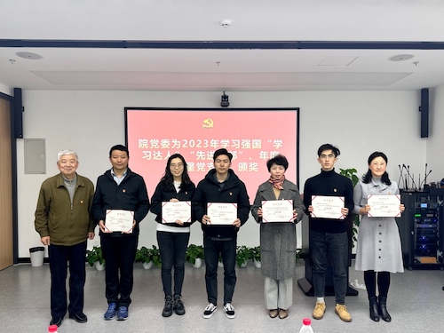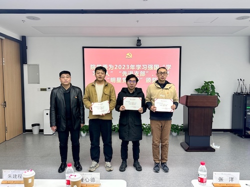 朱建程、曹心德分别为2023年度学习强国“学习达人”“先进支部”、年度“明星党支部”代表颁发荣誉证书。