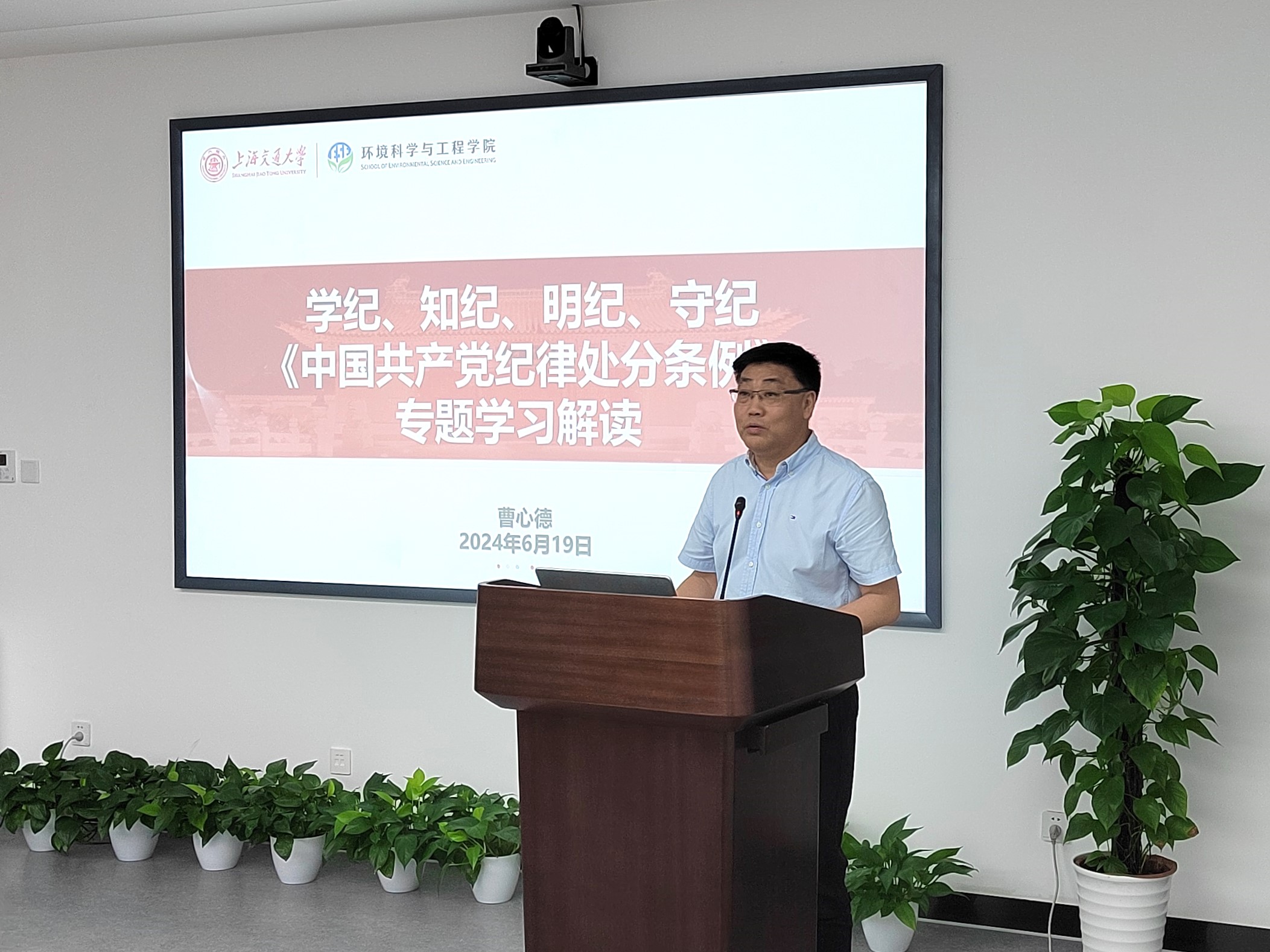 曹心德以“学纪、知纪、明纪、守纪”为主题作专题党课。他介绍了《中国共产党纪律处分条例》的主要内容和历次修订情况,围绕分则中的各项规定做了详细解读。会上还播放了廉洁教育微视频《坚守·初心》和警示教育微视频《一篇论文》《科研莫失信》。他强调,要结合工作实际,健全长效机制,把纪律学习融入日常工作,切实将党纪内化于心、外化于行,推动公司各项工作迈上新台阶。