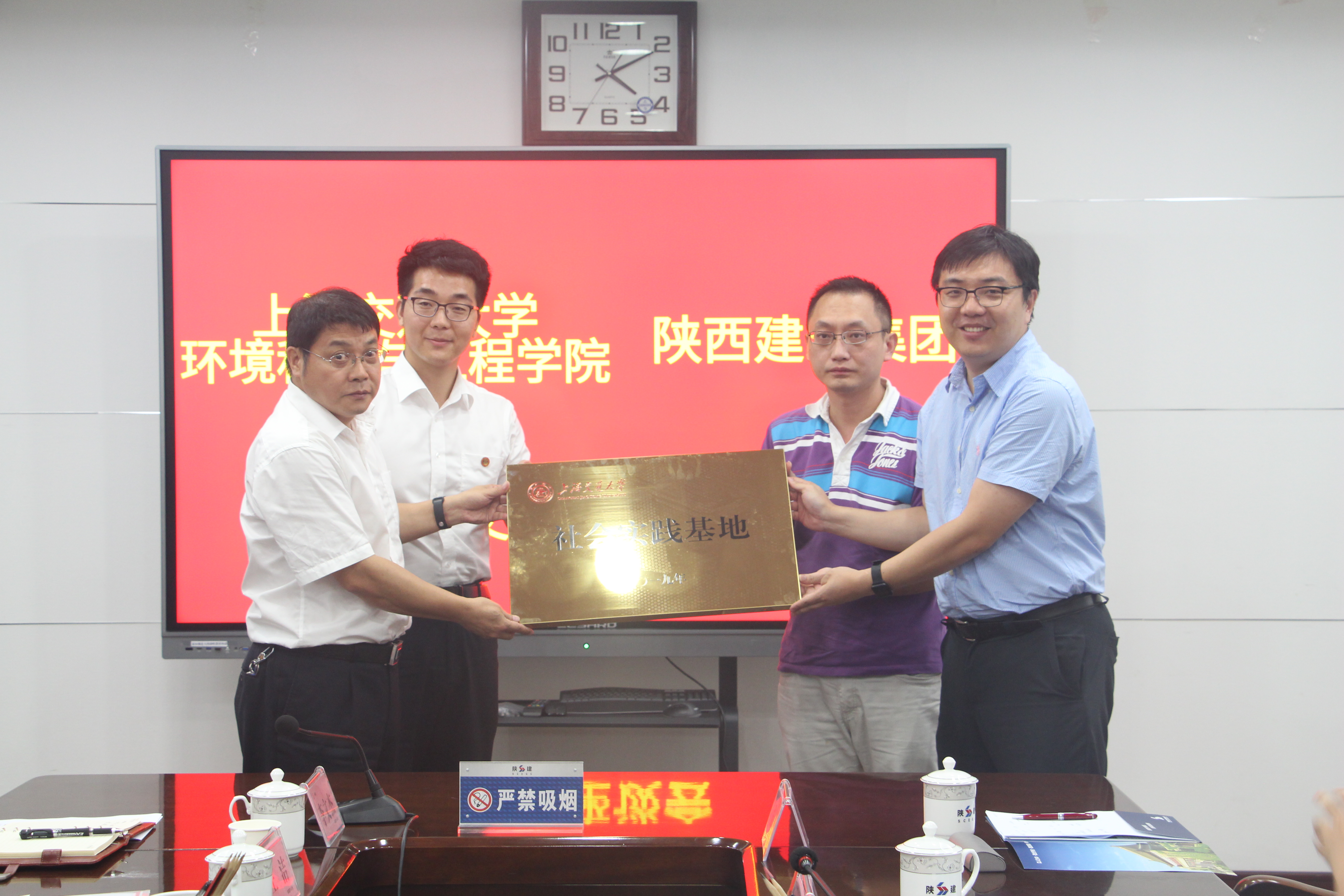 当天下午,实践团来到了陕西建工集团有限公司总部办公大楼。陕西建工集团有限公司(以下简称陕建)是具有工程投资、勘察、设计、施工、管理为一体的总承包能力及海外经营权的省属大型国有综合企业集团,工程建设人才资源优势称雄西部地区,在全国省级建工集团处于领先地位。在讲解员的带领下,实践团首先参观了陕建博物馆并对陕建的历史发展历程、重点工程、企业文化、科研成果等有了一定的了解。在随后的交流会上,陕西建工集团人力资源部副部长、职改办主任谷红文,设计院副经理李宁等就陕建人才引进计划及员工就业引导工程进行了深入详细探讨,并希望通过此次暑期社会实践,共同搭建平台,构建社会实践基地,召开招聘宣讲会,加强双方的合作交流,让更多的交大学子了解陕建,吸引交大学子到陕建就业,投身祖国西部建设。最后陈哲介绍了BETVICTOR伟德的发展情况,并代表BETVICTOR向陕建集团授BETVICTOR社会实践基地牌。