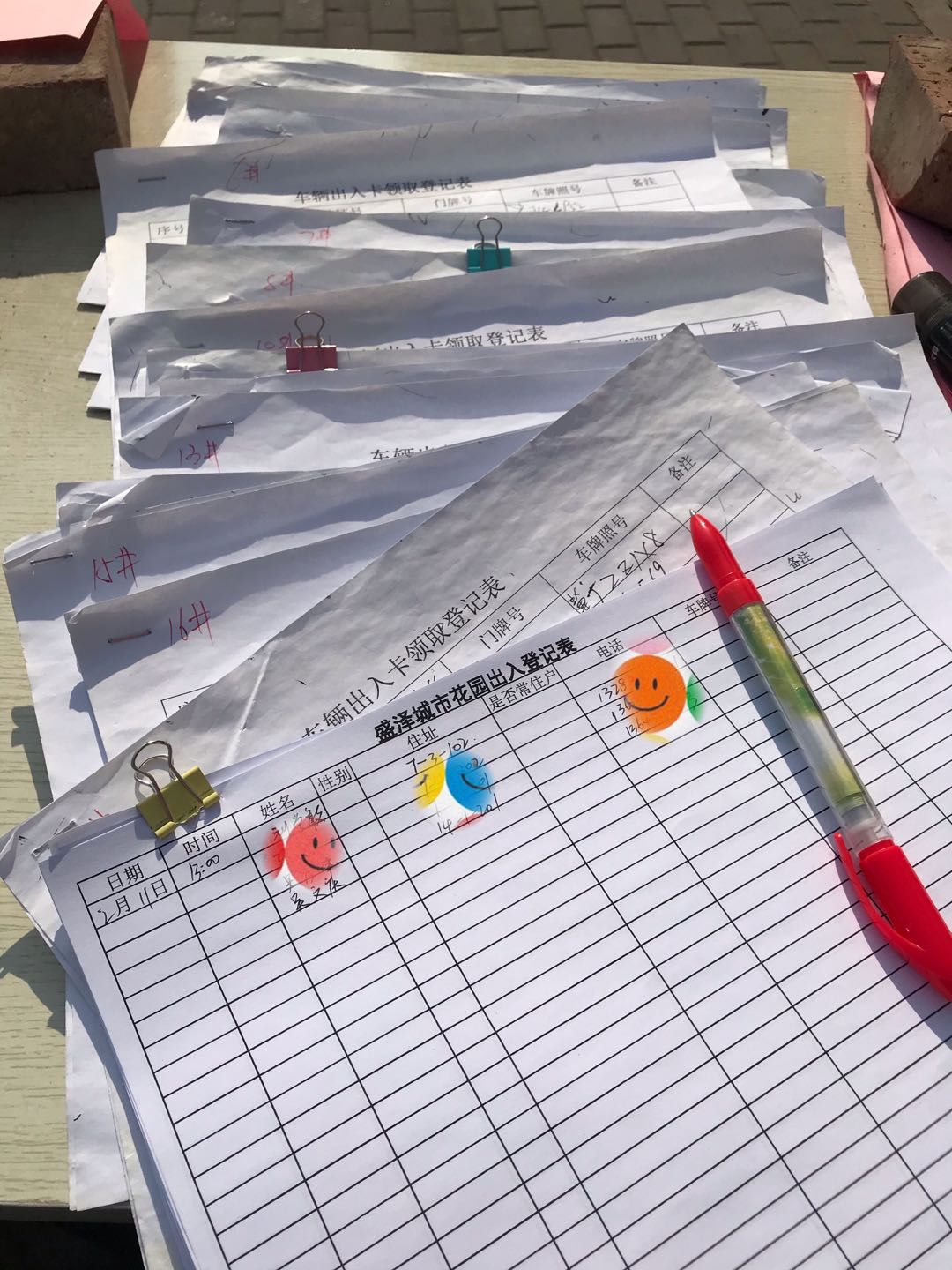 我们的驻扎营地主要是小区门口,负责出入证的办理、出入人员的登记、体温测量、以及个别出行人员的劝返工作。上下班高峰的时候,也是我们最忙的时候,时常会手忙脚乱,虽说沧州市整体企业还没复工复业,但由于小区内有大量医护人员、公安民警、基层公职人员等,会带来一定量的人员流动,他们是战斗在疫情防控一线的最美逆行者,必须要保证其出行自由。相对其他行业的人员,则要限制每户每天一人次的出行,以保证每户日常必需品的购买。期间我们也遇到很多人和事,有年迈的父母,替取消婚礼的子女卑微请求社区放行,只是想让两家人在家简单吃个饭举行迎亲仪式;有不到黄河不死心的两兄弟,在我们多次苦口婆心劝返后放弃出行玩耍;还有一个小员工,每天背着书包往返父母家及爷奶家,我们随即联系其父母不要让小孩子来回走动,避免增加感染的风险。也有热心的居民,送来橘子和八宝粥,给了我们别样的温暖。疫情当前,管理虽严,防疫防控,人人有责,多一份理解,便添一份力量!