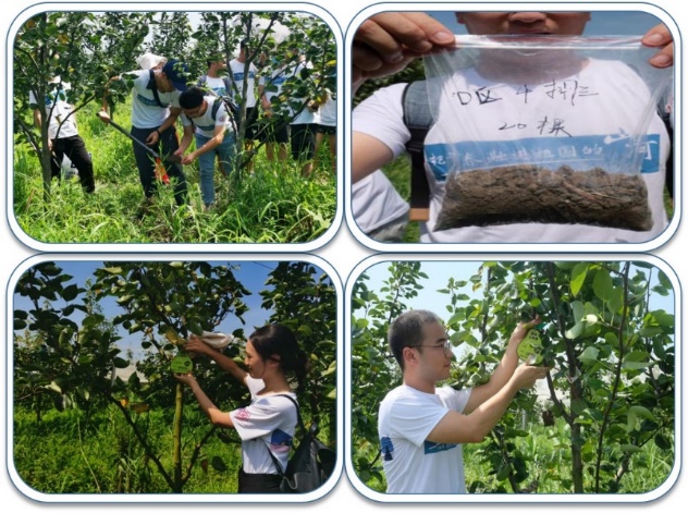 实践团队首先来到众熠梨园,对马路村科技兴农项目进行了参观学习。时值盛夏八月,炎炎烈日下的梨园更显绿意,在负责人带领下参观并品尝了翠玉蜜梨,枝繁叶茂的梨园和清香脆甜的果实展现了科学种植和生长环境的重要性。参观中,同学们了解了梨树种植技巧,结合专业优势,对栽培梨树的土壤进行分批采样,并将样品带回公司进行研究和分析。同时,支部成员还积极认领梨树,以专业优势助力梨园发展,用科学方法对梨树生长环境建立周期性监测。