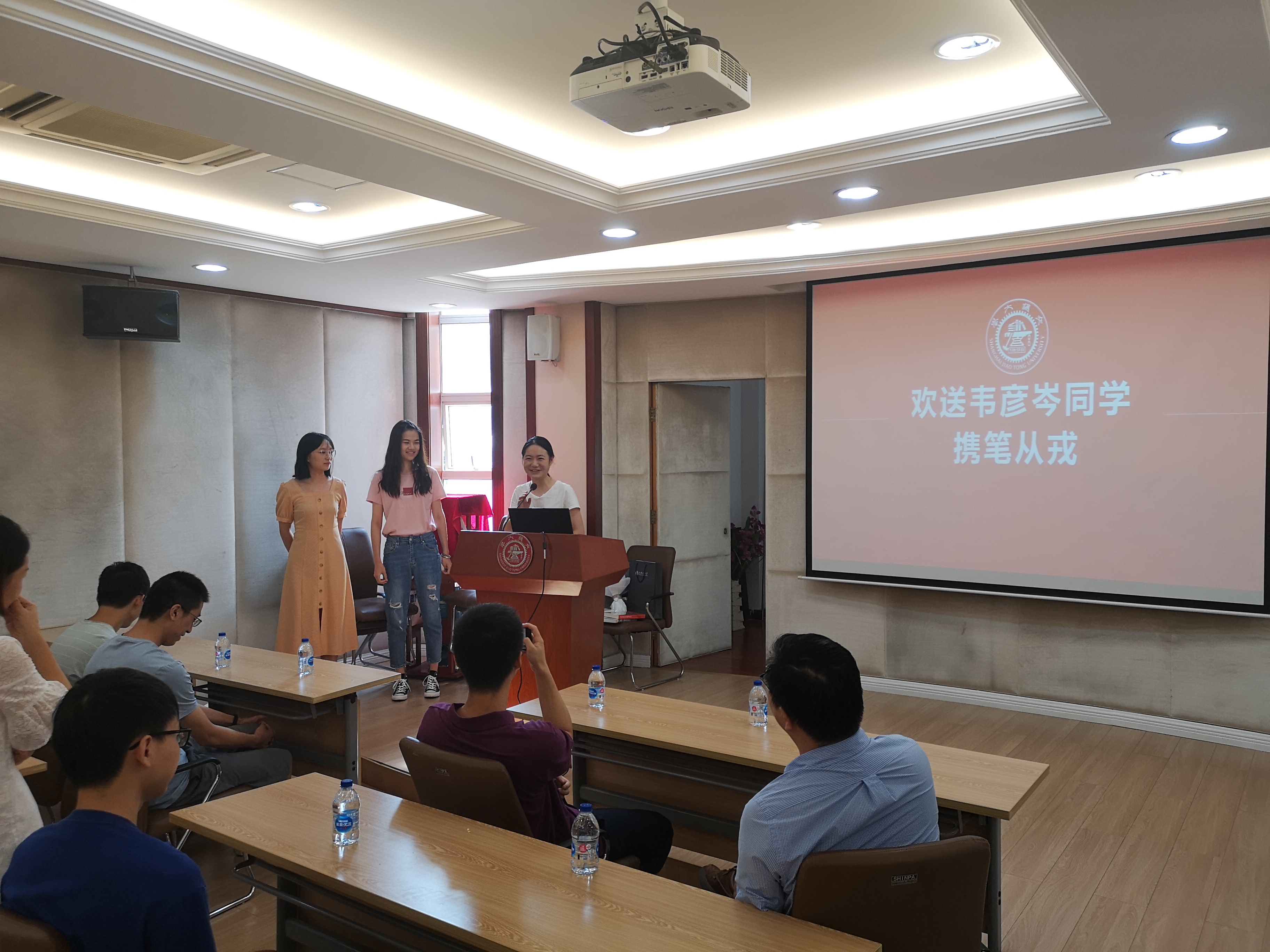 之后新兵战士韦彦岑上台,表达了对父母养育的感恩,对公司培养的感激,对同学送别的感谢。韦彦岑说:“能参军入伍我感到无比光荣,我会继续踏实学习,提高自己,把交大人,环境人的卓越气质带到军营中!”