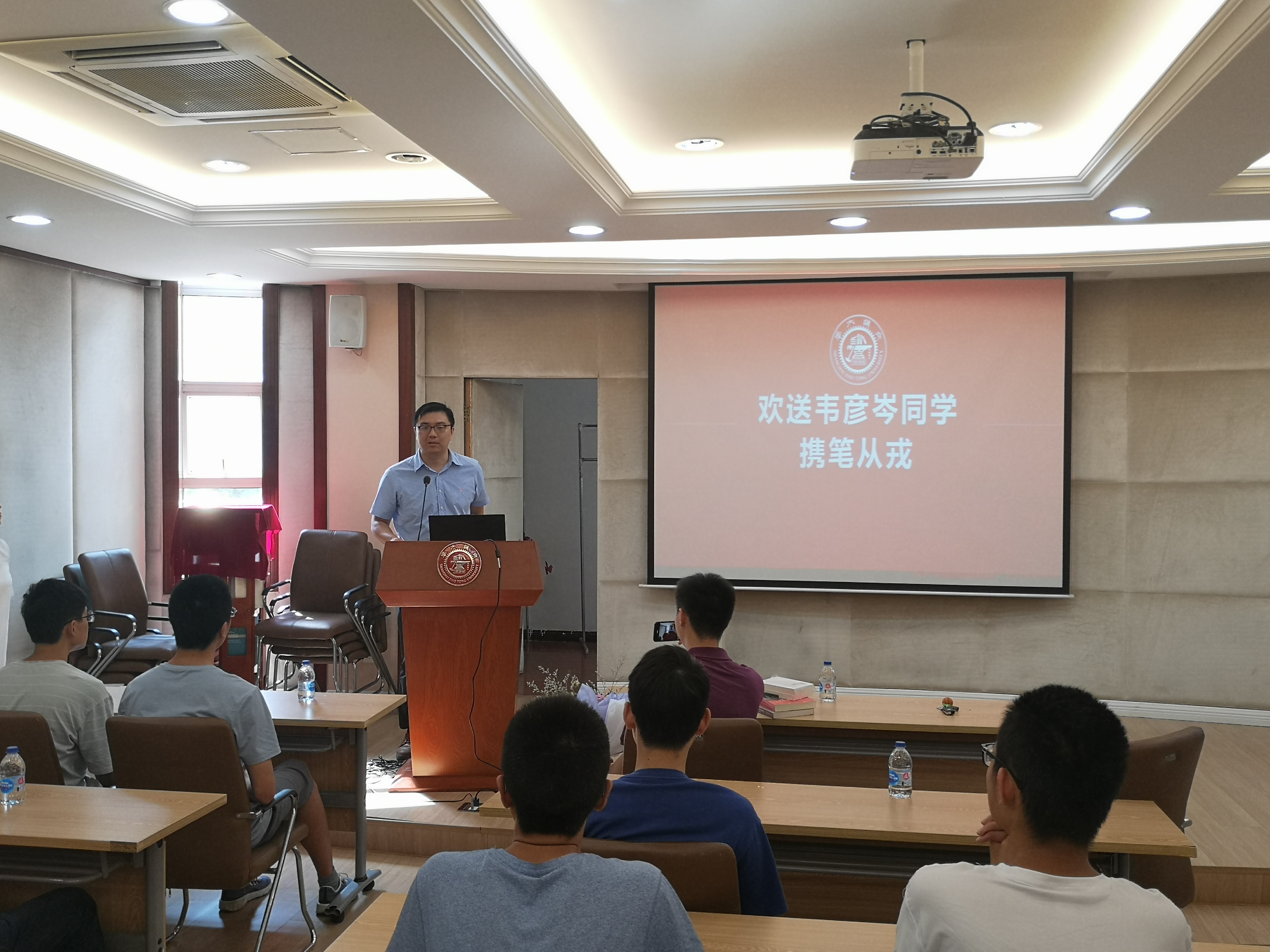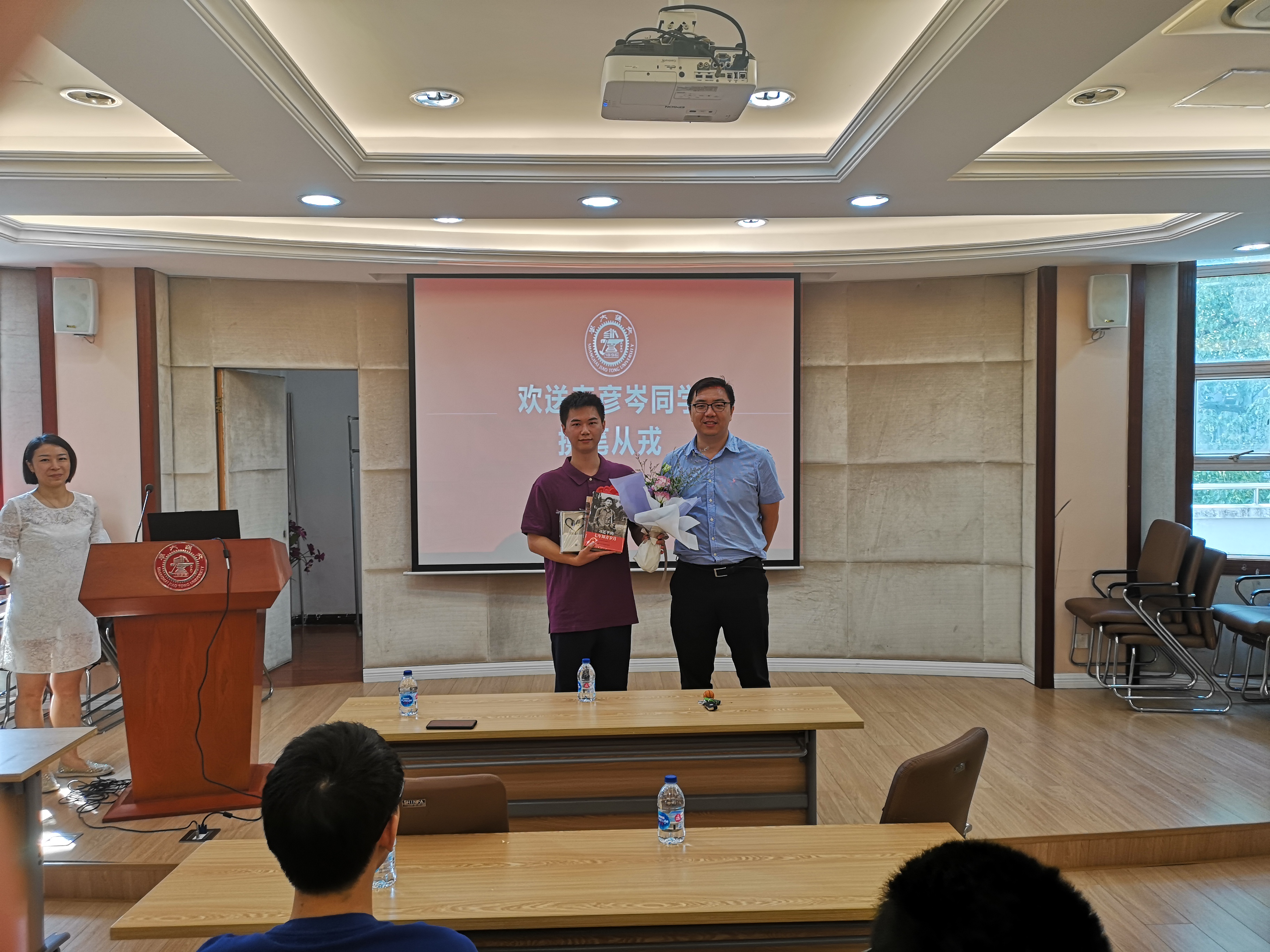 活动最后,​公司党委副书记陈哲老师发言,祝福之余,也提出了对于战士的期望:时刻记得自己交大人的身份,做好一名普通战士的同时,也要发扬交大人的优良作风,把敢于承担,争当先进的品质带入军营。陈哲老师还送上了公司精心准备的学习读物,希望韦彦岑在军营中也不忘学习提高自己,做有思想、有担当、有追求的好战士。