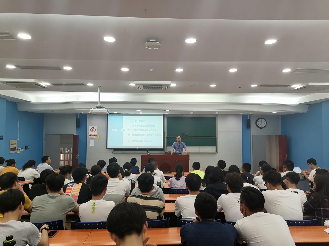 耿涌首先从什么是环境,我们从哪里来,我们将去往何方这三个问题入手,让新生对环保行业及行业内容有了初步的认知与了解。紧接着他对环保行业的法律法规,发展趋势,全国生态环境保护大会精神等方面对我国环境状况进行了全方位的阐述。耿涌表示,国家对环保行业的重视程度逐年提高,环保行业的未来必将有更好的价值体现,这鼓舞了新生的科研信心。