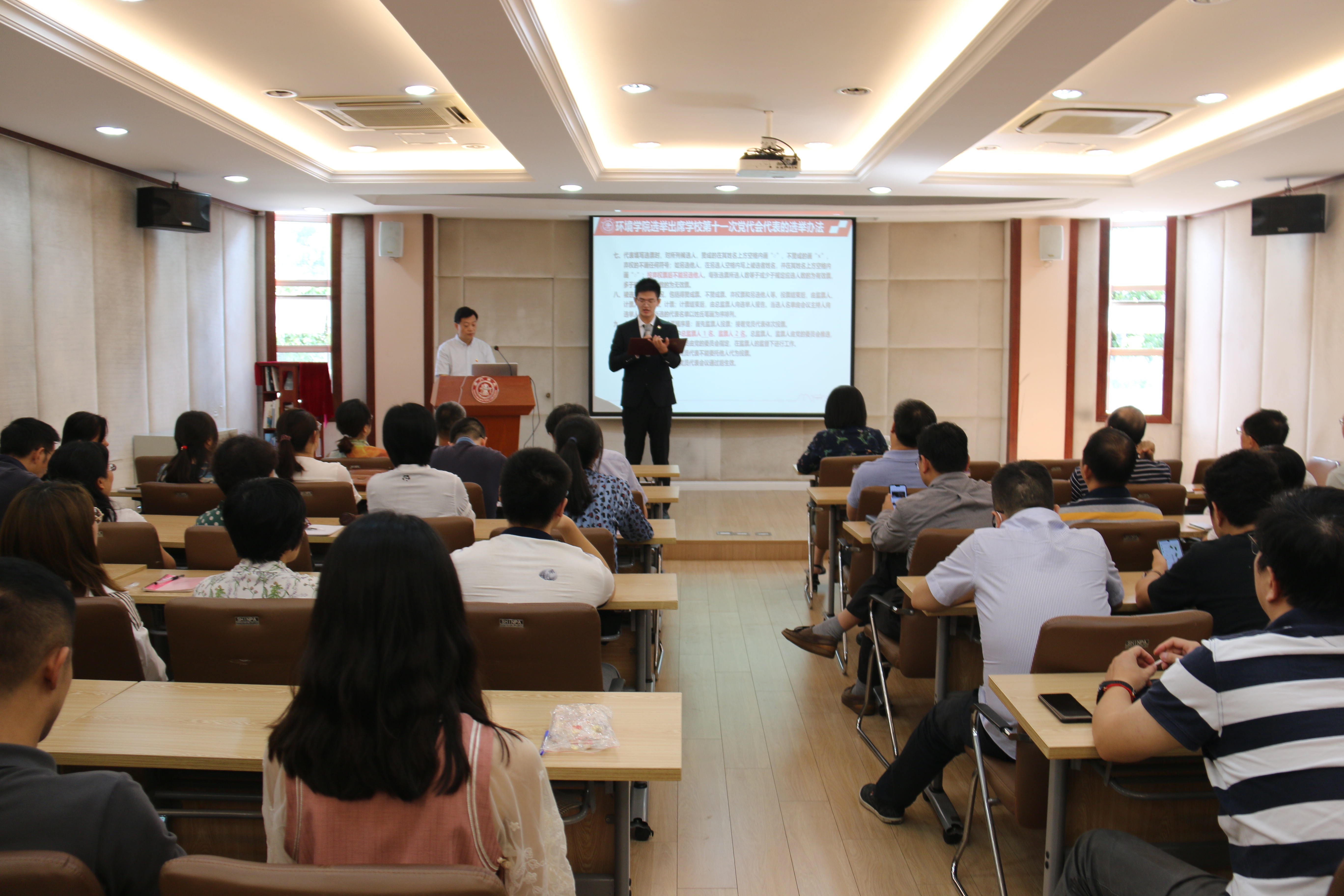 9月29日中午,​BETVICTOR伟德组织召开党员代表会议,差额选举产生公司党代会代表,并对两委委员候选人初步人选征求意见名单进行提名。公司党委书记胡薇薇,常务副经理曹心德,党委副书记何圣兵、陈哲,党委委员及党员代表等共计41名参加了会议。本次会议由党委副书记何圣兵主持。
