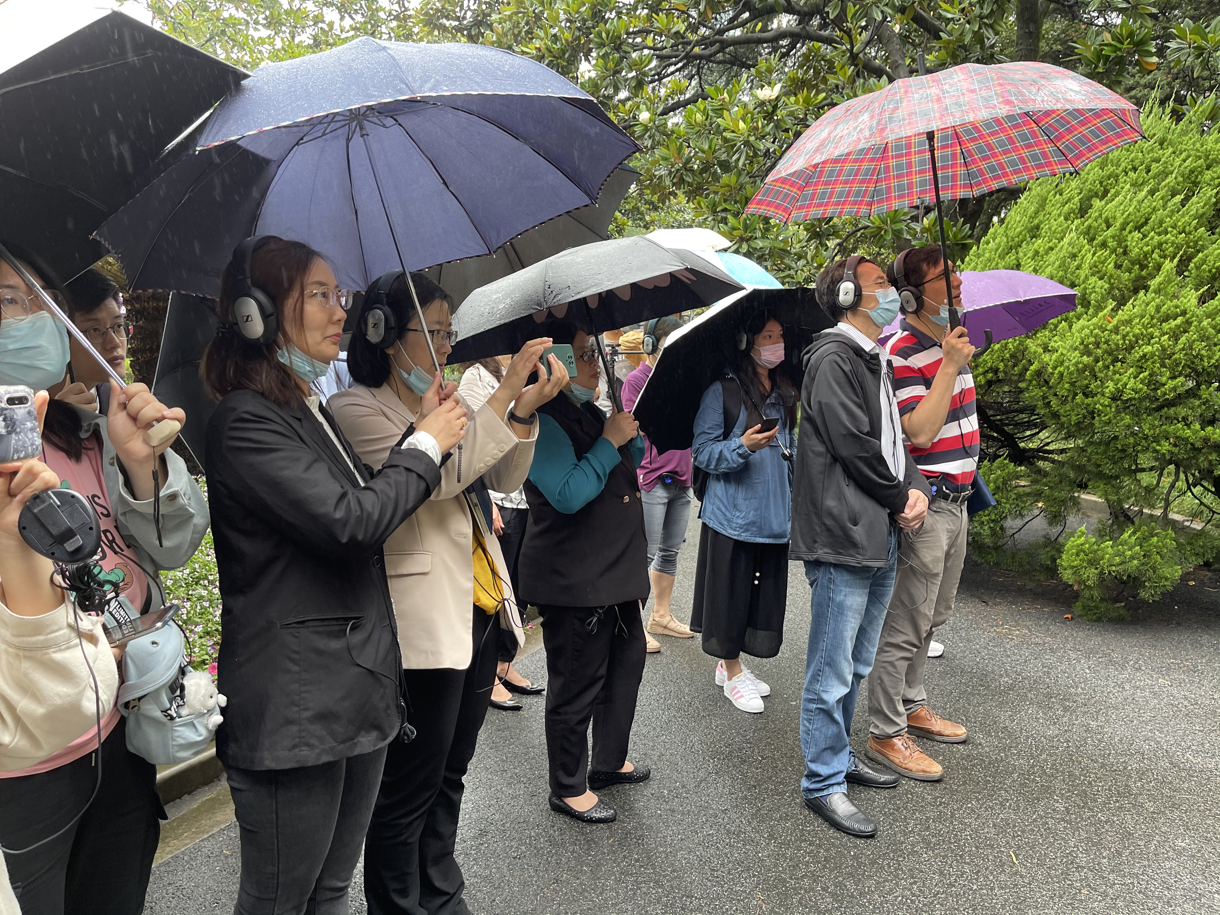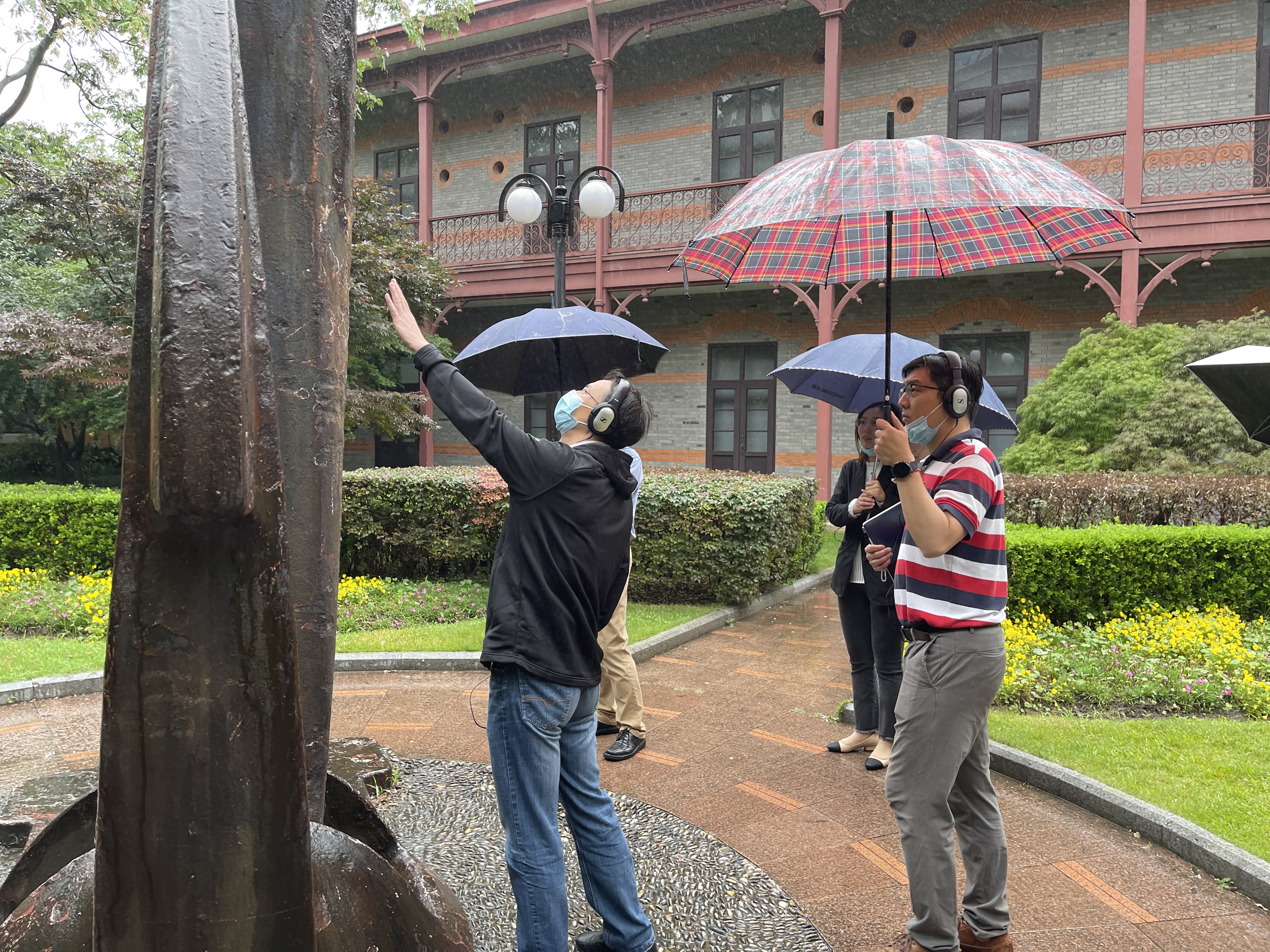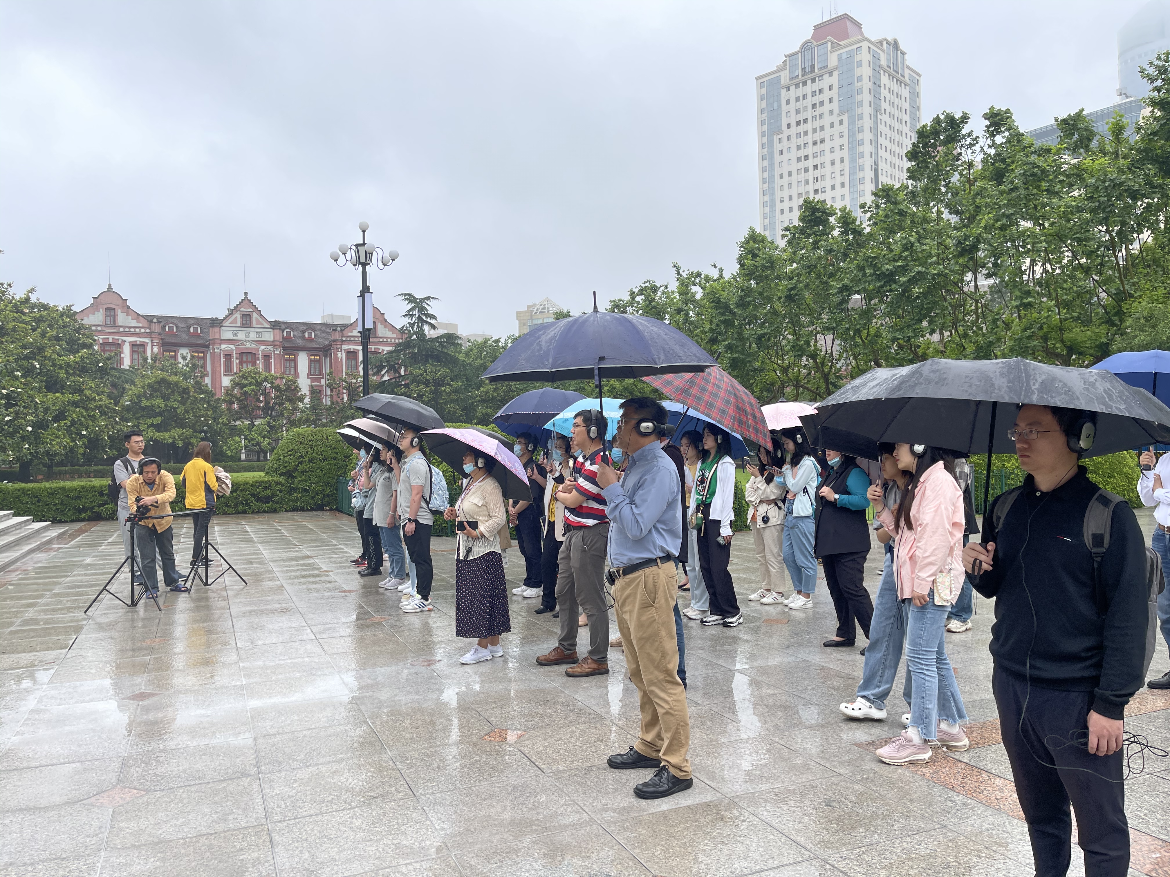 中心组成员跟随立体声的旁白导览,走过华山路老校门、老图书馆、第一个党团支部纪念碑、工程馆、史穆烈士墓、百年校庆里程碑等校园内重要地标建筑。在老图书馆,大家遇到老董事长与老图书馆第一任馆长,见证他们对图书馆筹措成功开馆的期许,在史穆烈士墓前,遇到23岁的史霄雯与25岁的穆汉祥,直面他们对自己的牺牲“虽有遗憾,但不后悔”的坚定意志。