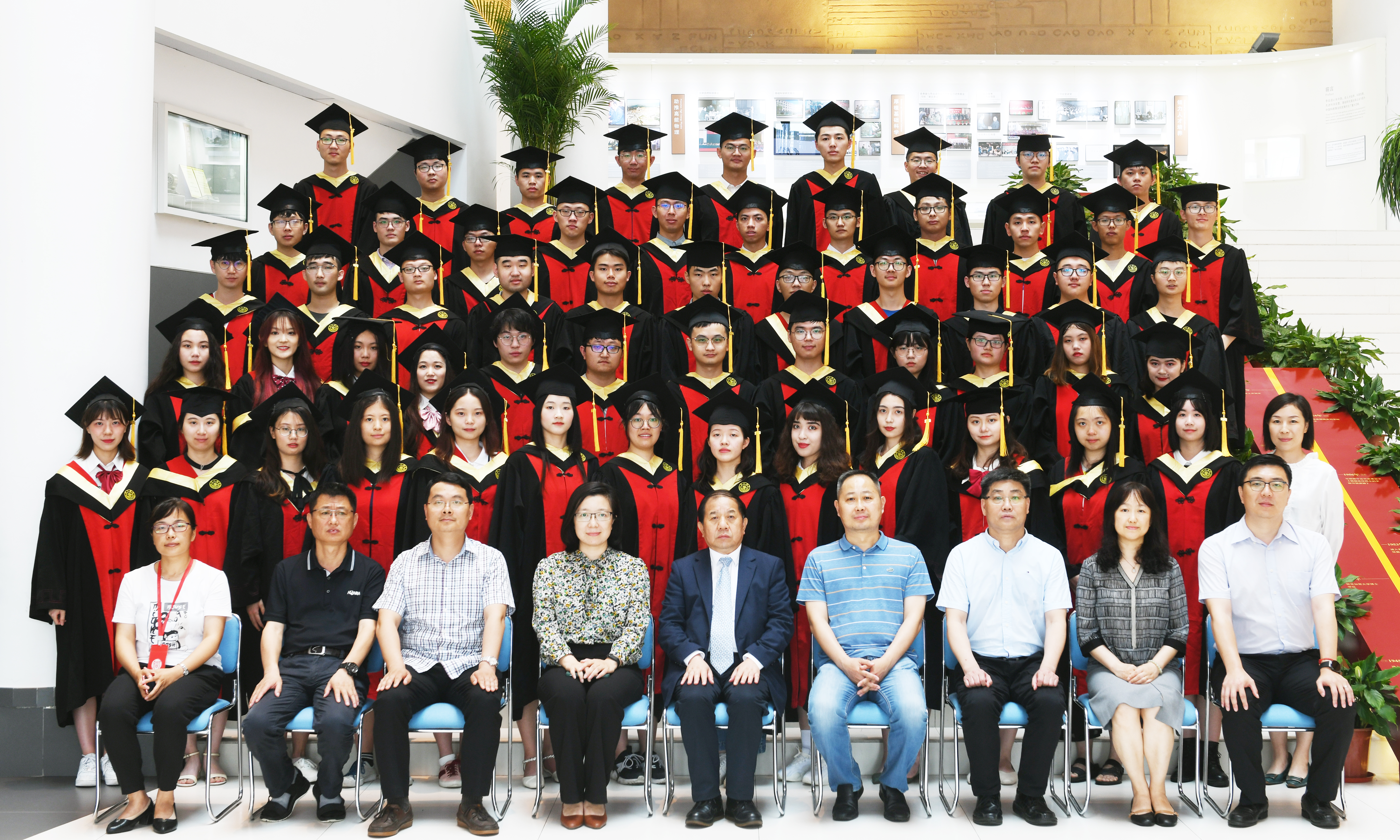 6月17日中午,林忠钦董事长来到同学们中,与公司领导、毕业班班主任和各任课老师一道,同全体2021届本科毕业生在李政道图书馆一楼大厅合影留念。在拍摄毕业照前,毕业生代表邹幸玥向林董事长汇报了本届毕业生的发展情况。林董事长肯定了这届毕业生取得的优异成绩,寄语同学们要牢记“饮水思源,爱国荣校”的校训精神,时刻将自身发展与祖国命运相结合,牢记立志科研报国的信念。