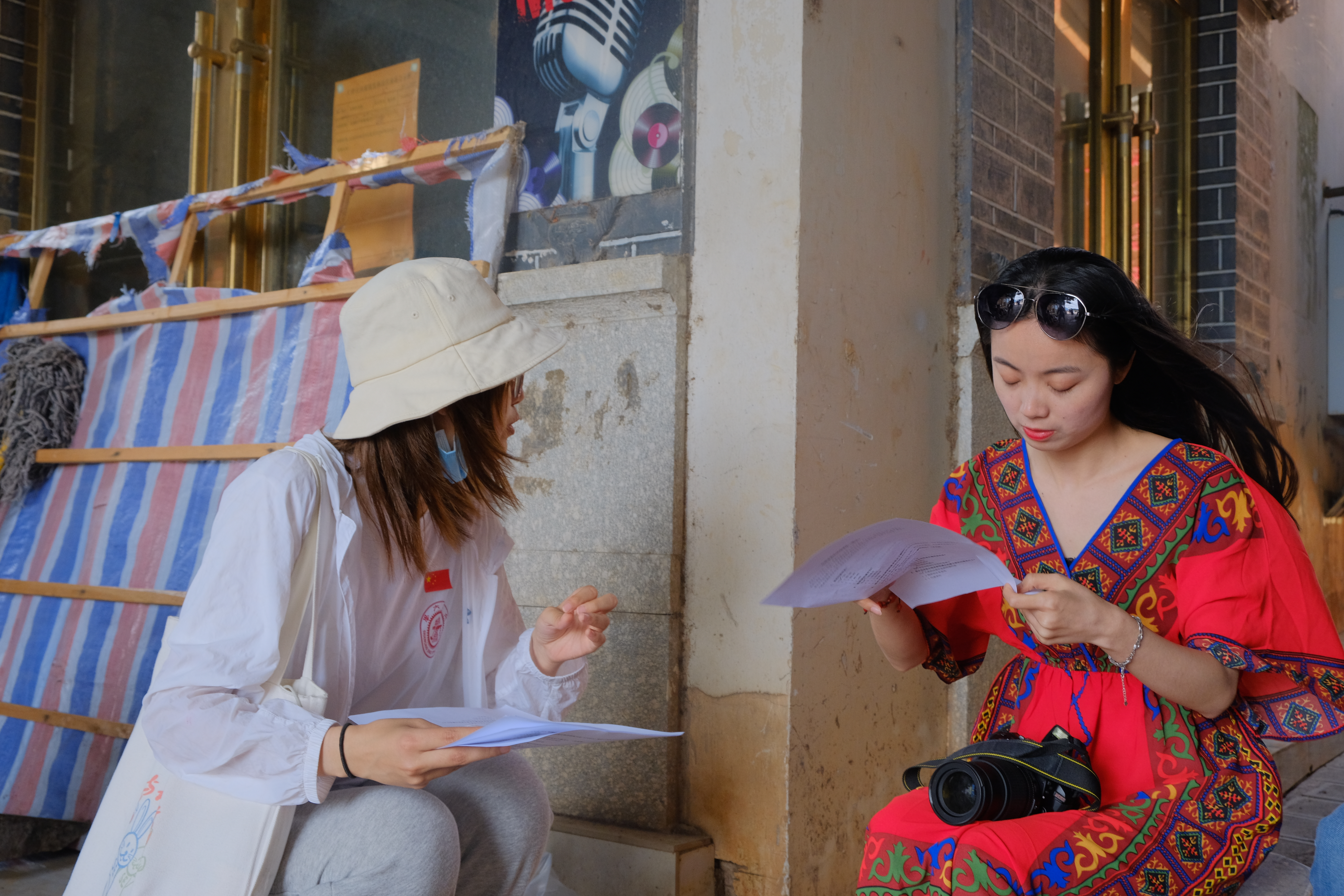 水样采集结束后,实践团赶往了双廊古镇对游客和当地居民进行了问卷调查和视频采访,问卷和采访从生物多样性保护观念调查、洱海及其周边生物多样性变化情况调查、生物多样性保护的宣传程度等多个方面展开。