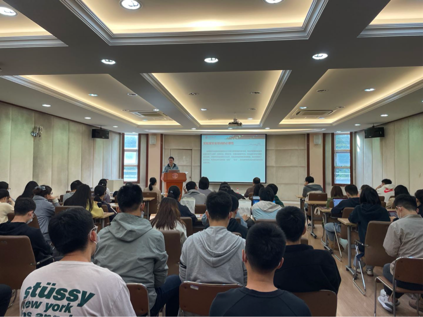 上海交大实验室安全与环保中心综合事务办公室何征为新进师生做化学品安全管理培训。他以近几年发生的重大安全事故开题,针对各类化学品的危险危害性、操作注意事项、实验室日常防护及危险废物的处置方法等进行了全面的讲解。