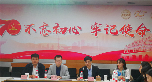 10月27日上午,​BETVICTOR伟德团委与附属仁济医院团委联合开展的“上海市五四红旗团委”争创共建活动在仁济医院东院举行。BETVICTOR团委书记钱文韬,仁济医院团委书记庄旭,​BETVICTOR伟德团委书记汤淏溟及30余名来自两所单位的团青骨干参加本次活动。本次联建活动分为理论学习和体验式培训两个部分,也是仁济医院团干部培训体验营的开班仪式。