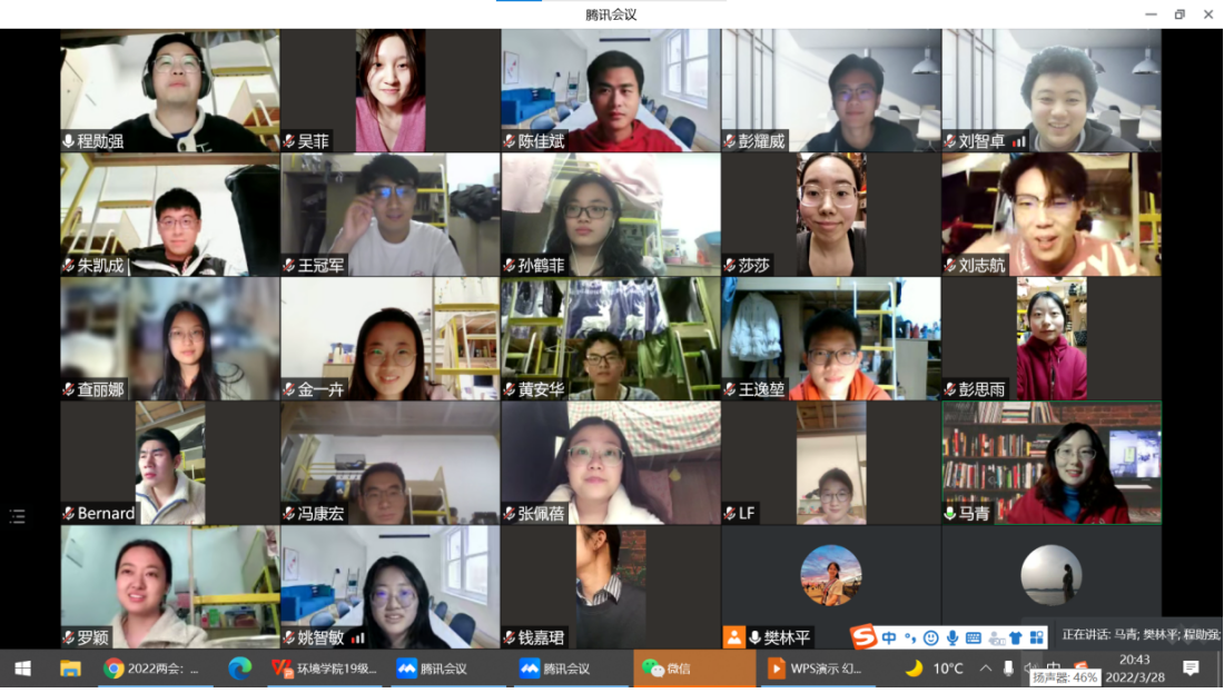 为深入学习贯彻2022年全国两会精神,切实把思想行动统一到党中央重大决策部署上来,3月28日晚,​2019级硕士生党支部组织全体党员召开“学两会,战疫情,话担当”线上主题党日活动。公司党委组织员马青列席会议。本次会议由2019级硕士生党支部书记程勋强主持。