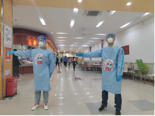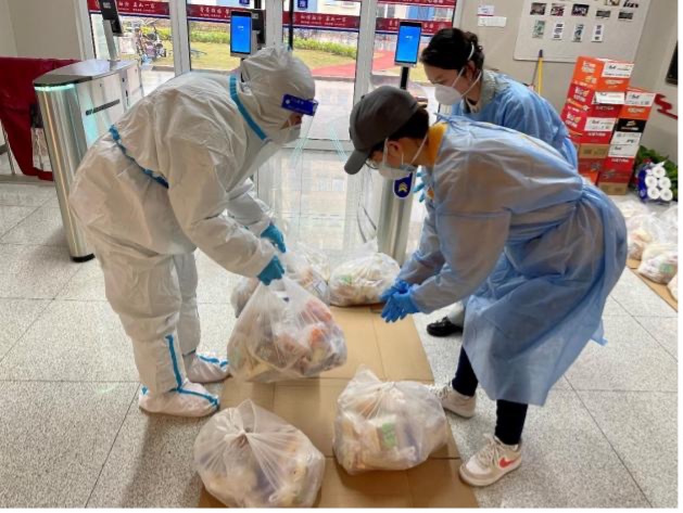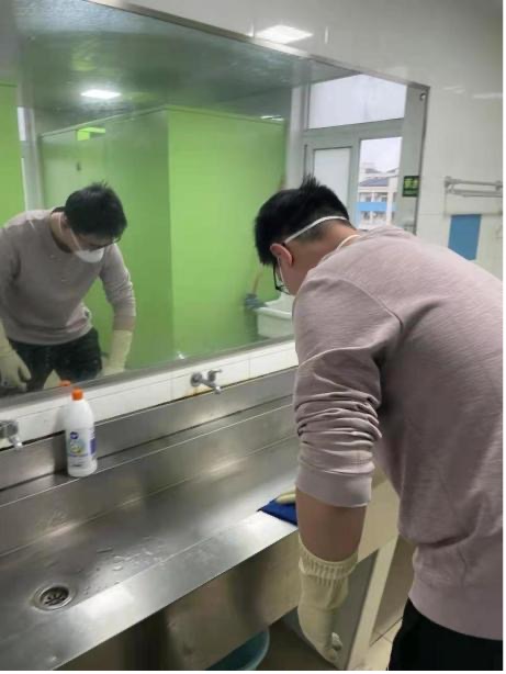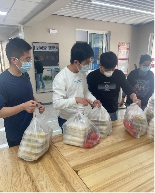 宿舍三尺地,阻击第一线。面对封楼,党员黄秋杰主动担任宿舍楼栋防疫志愿者,任孟、邢亚楠、严攀、胡立扬等同学分别担任所在宿舍套间长,及时传递疫情防控通知,参与楼栋消杀、搬运物资、发放餐食、组织核酸检测等工作,为疫情防控贡献自己的力量。他们表示,作为员工党员,特殊时期更应该“冲锋在前、担当在前、实干在前”。