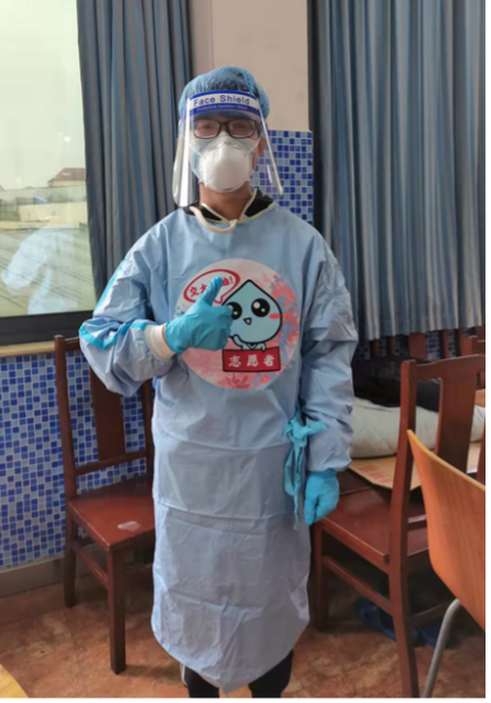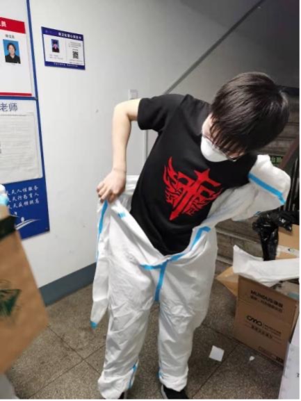 党员陈明作为员工辅导员,封校以后主动向楼栋指导老师“亮明身份”,申请成为楼栋志愿者,协助做好信息的统计,三餐及物资的发放。同时积极参与到线上抗疫志愿活动,及时向在酒店隔离的同学传达防疫政策及相关新闻、讲座安排,辅助老师做好心理疏导、排查并解决问题。在近期核酸检测中,他自发参与采样志愿活动,穿上“大白”,与更多的志愿者共同奋战于抗疫一线。他表示:“相信在大家的共同努力下,没有一个春天不会到来,战疫必胜!”