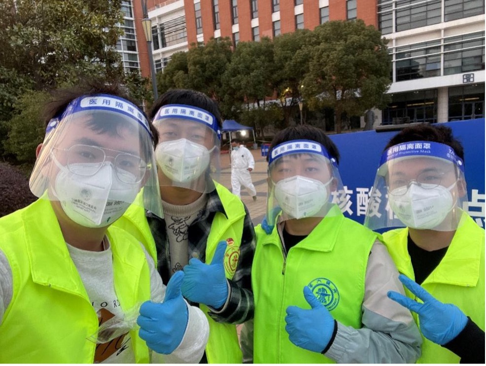 党员纪玉晏、张凯琪、董凤凤和积极分子周昌辉、王晓慧、张静、曾庆瑞、胡浩、吕春雨等同志,响应党组织号召,他们或担任协助核酸检测工作的志愿者,在霍英东体育馆等核酸检测点负责控制人流速度;或担任楼栋层长,负责楼栋防疫物资的分发,统计一日三餐定餐情况,每日组织套间人员做核酸,维持队伍秩序,统计核酸检测完成情况;或协助宿舍管理老师和阿姨做机动志愿者,进行宿舍楼每日消杀等工作。他们在各自的岗位发挥专业优势,尽己所能为身边同学提供帮助。他们表示,除了和公司一起“守好后方”,在同学中传递正能量,大家也在不断思考还能为公司做些什么?疫情之下,医疗废物的回收、污染环境的消杀等也都面临着挑战,能够运用所学,在特殊时期与大家一起以志愿者的身份共同守护交大家园,正是对党组织最有意义的“思想汇报”。