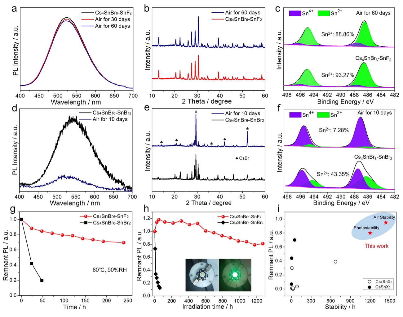 图2. SnF2衍生的Cs4SnBr6钙钛矿的稳定性测试